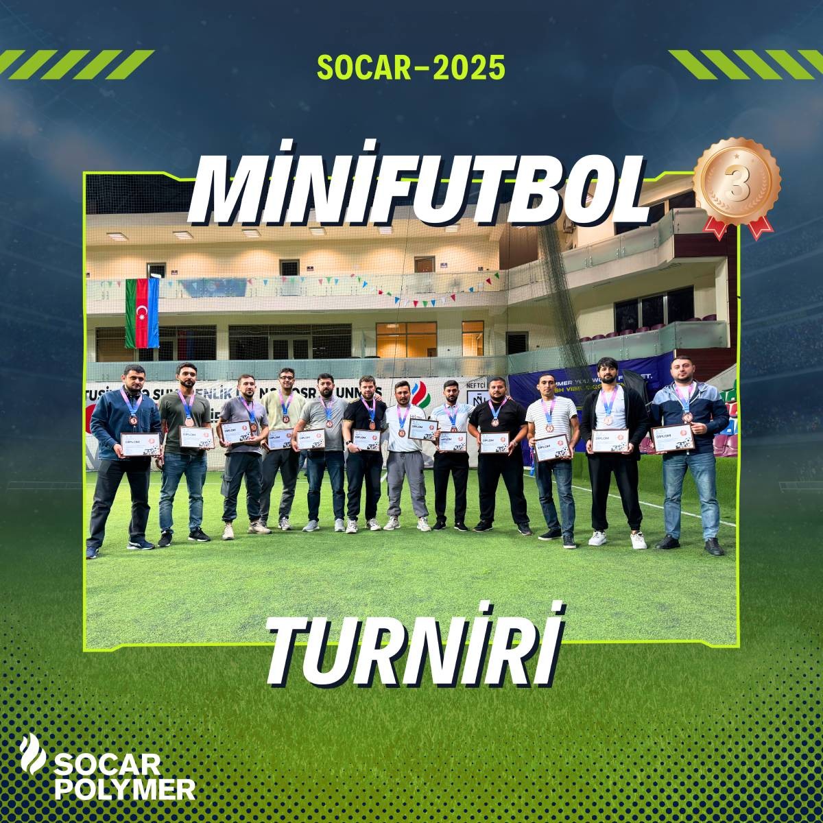 “SOCAR Polymer”in minifutbol komandası, SOCAR-a tabe olan 29 müəssisənin iştirakı ilə 7 həftədir ki, davam edən “SOCAR-2025” minifutbol turnirində uğurlu çıxışı ilə seçilərək yarışın ən güclü 3-cü komandası oldu. Komandamız bu nəticəyə qədər iştirak etdiyi hər oyunda əzmkarlıq, komanda ruhu və məsuliyyətlə mübarizə apararaq meydanda həm texniki, həm də peşəkar səviyyədə fərqləndi. Komanda üzvləri arasında həmrəyliyin və qarşılıqlı dəstəyin bu qədər güclü olması “SOCAR Polymer”in korporativ mədəniyyətində sağlam həyat tərzi və komanda ruhunun necə önəmli yer tutduğunu bir daha nümayiş etdirdi. Komandamızın hər bir üzvünü bu möhtəşəm nəticə münasibətilə səmimi qəlbdən təbrik edir, onlara gələcək yarışlarda da daha böyük uğurlar və zəfərlər arzulayırıq. Ümid edirik ki, bu uğur yaşıl meydanlarda qazanacağımız qələbələrin yalnız başlanğıcı olacaq!