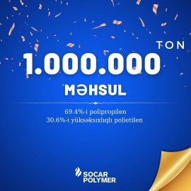 8 августа 2024 года на заводе SOCAR Polymer состоялся выпуск миллионной тонны продукции. Из миллиона тонн продукции, произведенной с момента ввода завода в эксплуатацию, 69,4% составил полипропилен, а 30,6% — полиэтилен высокой плотности. Высококачественная полимерная продукция нашего завода, произведенная с использованием новейших технологий, поставляется как на внутренний, так и на зарубежные рынки.