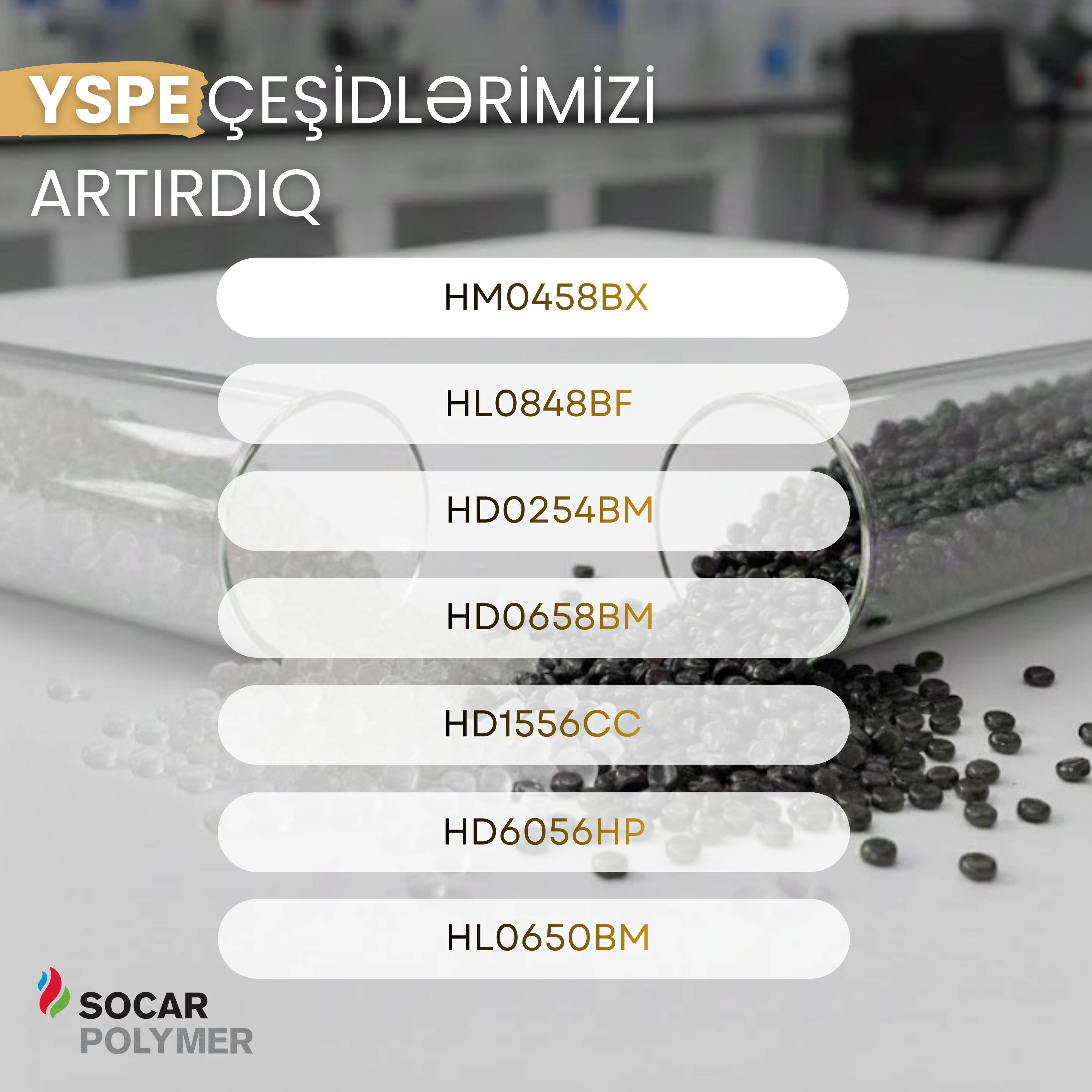 2025-ci il ərzində məhsul çeşidimizi genişləndirərək müxtəlif sahələrdə istifadə olunan yeni YSPE (yüksəksıxlıqlı polietilen) markalarımızı istehsal edərək bazara təqdim etdik: