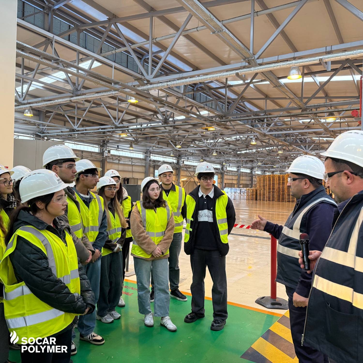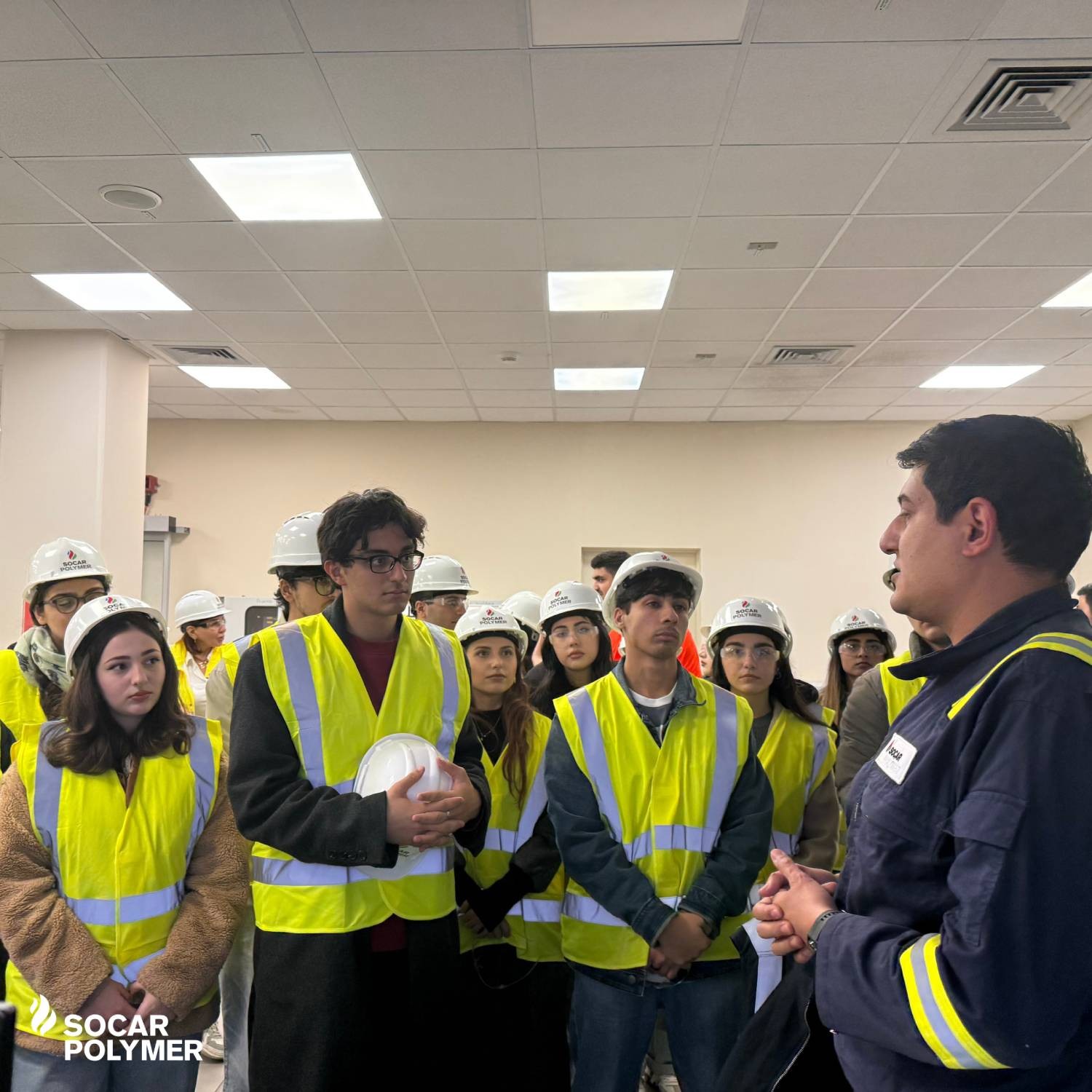 Посещение завода SOCAR Polymer делегацией общества «Инженеры-химики» было организовано по инициативе Центра деловых связей и карьеры Бакинского инженерного университета. В рамках визита, в котором приняли участие 20 студентов и 2 преподавателя, гости посетили заводскую лабораторию, главную диспетчерскую, упаковочный участок и склад готовой продукции. Сотрудники SOCAR Polymer подробно рассказали студентам о процессе полимеризации и в целом об этапах производства, продемонстрировали возможности управления круглосуточным производственным процессом и методы обеспечения качества.