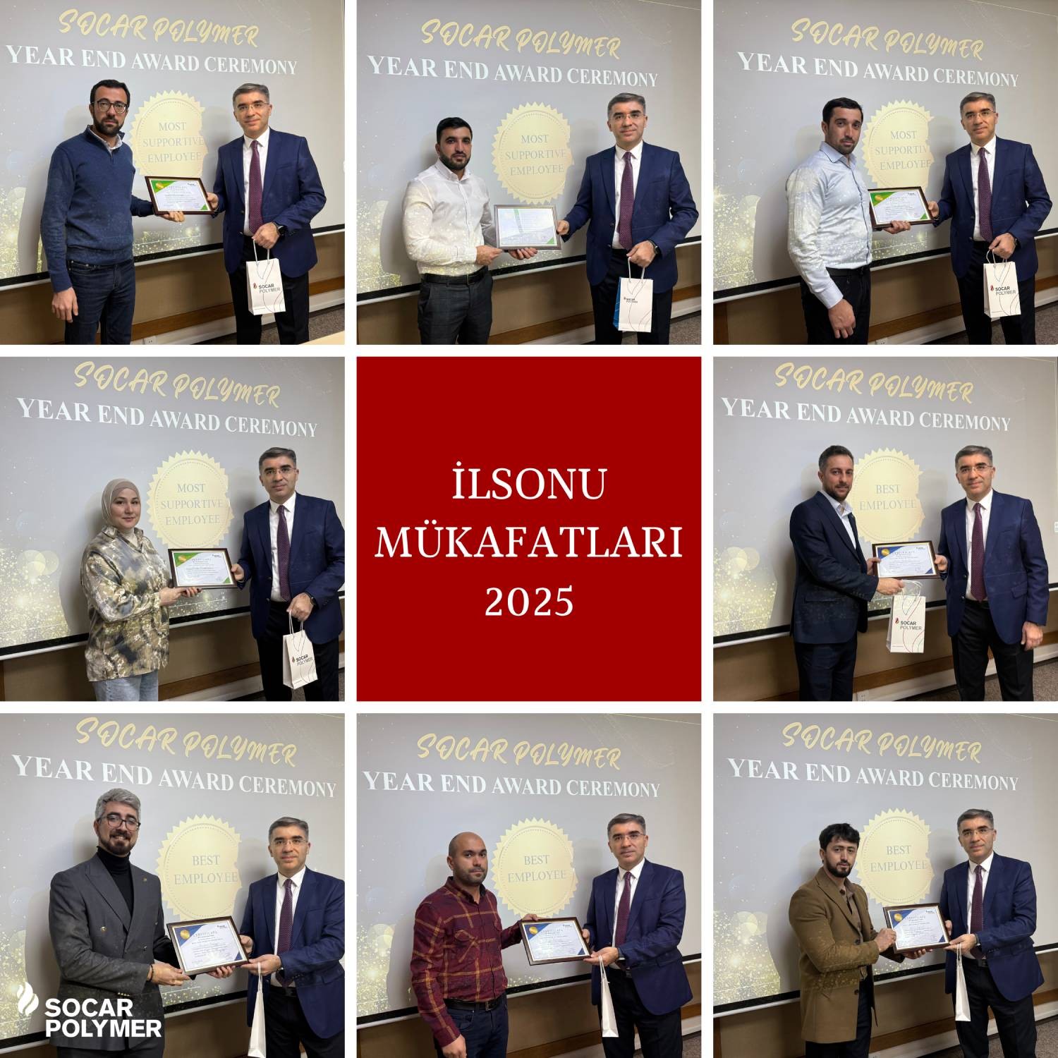 Номинированным в различных категориях сотрудникам компании SOCAR Polymer были вручены памятные сертификаты и подарки.